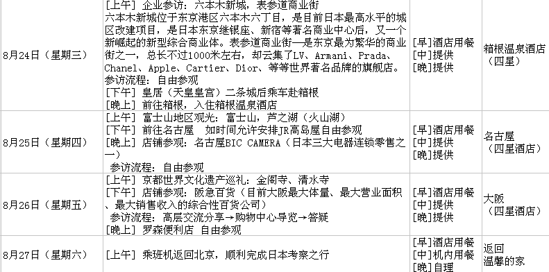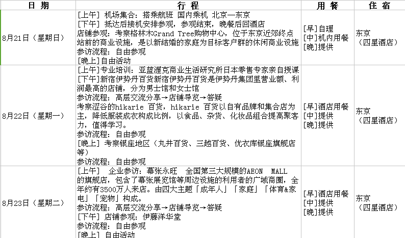 專家隨團指導:中國百貨商業協會、中日韓交流協會、海外游學資深專家全程隨團指導