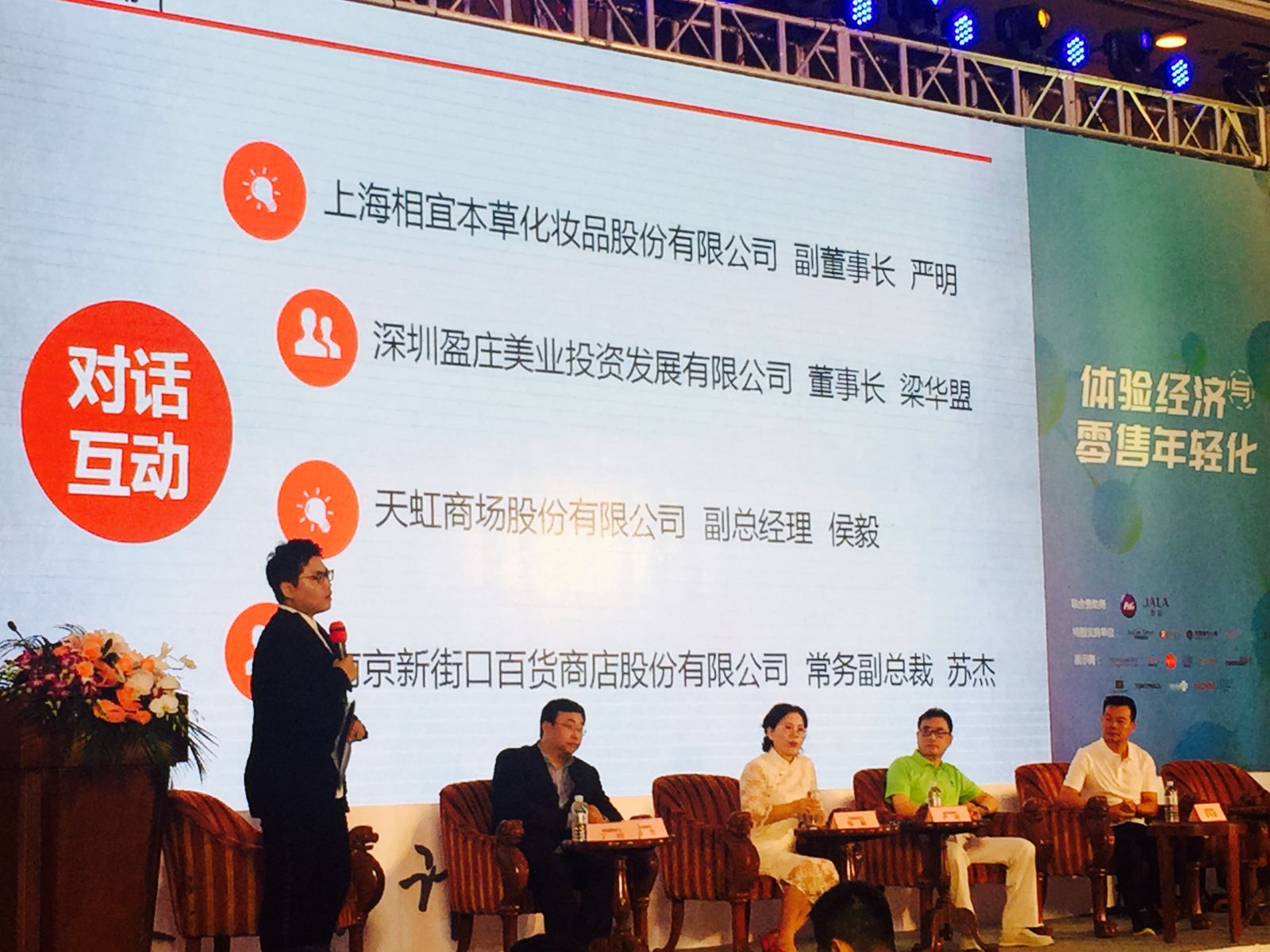 在互動對話環節,在和君商業零售研究中心主任丁昀的主持下,天虹侯總、新百蘇總與品牌代表上海相宜本草副董事長嚴明、渠道商代表深圳盈莊美業投資發展有限公司董事長梁華明共同探討如何加強聯動,打造更優的消費體驗,為消費者創造更多價值。