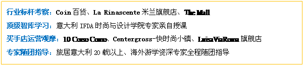 中國(guó)零售業(yè)時(shí)尚買手研修班系列活動(dòng)之三——意大利游學(xué)日程安排