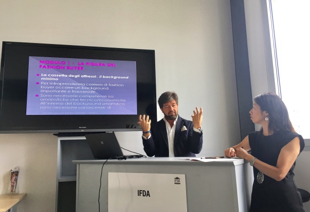 來到意大利著名的IFDA時(shí)尚與設(shè)計(jì)學(xué)院,與學(xué)院專家教授、意大利米蘭買手協(xié)會(huì)創(chuàng)始人齊聚一堂,共同學(xué)習(xí)研討買手研修班系列活動(dòng)模塊三的內(nèi)容,主題為“時(shí)尚買手商品訂貨管理技巧”,Maurizio教授重點(diǎn)為我們講解了“品牌定位與營(yíng)銷策略、流行趨勢(shì)與搭配組貨、以及Marketing、Fashion方向……”