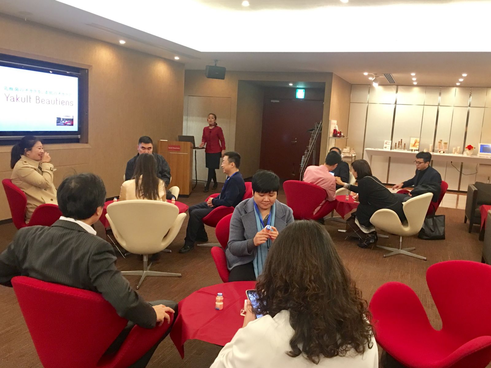 一般社団法人日中化粧品?健康食品事業促進協會,26日下午為中國買家精心安排了化妝、美妝品牌商務對接洽談會,日本20多家品牌商、總代理,約40個化妝品品牌與中國代表團進行了一對一洽談、面對面交流,雙方探討了日本化妝品技術•原料•設備•OEM生產及品牌引進,同時就代理經銷之事進行了深入溝通,商談在熱烈的氣氛中進行,時間持續三個多小時,大部分公司達成合作意向!