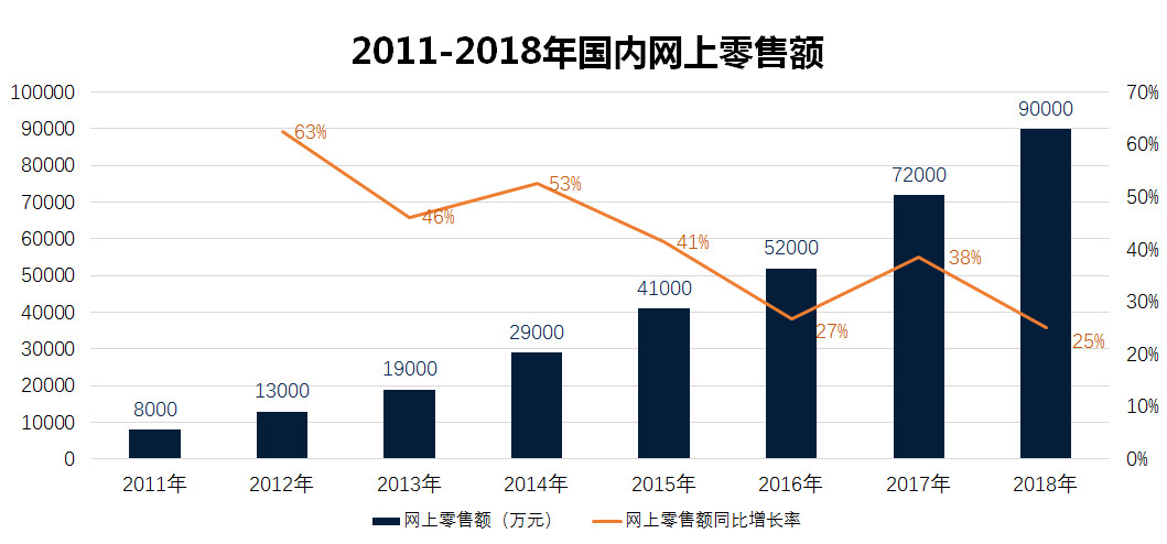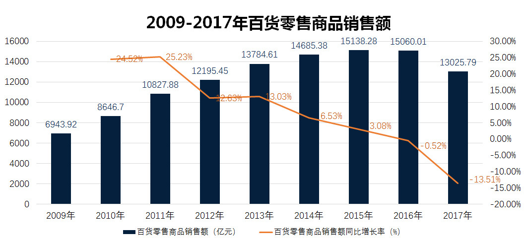 第一個部分我們簡單回顧一下零售識別的發展歷程,這有一張圖表,來自于我們數據都是國家統計局上面的網站數據,第一個是全國網上零售額的變化趨勢,從2011年到2018年,先快速看三張圖,第二張圖是2009-2017年百貨零售商品銷售額的變化趨勢,第三張體圖是綜合零售商品銷售額的變化趨勢。