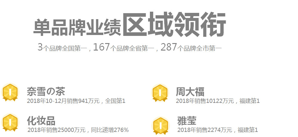 我們的化妝品在東百中心里面,把它定位成第一核心競爭品,所以福建省的化妝品做的非常差,整個福建省在2017年全福建省零售賣場的化妝品的總額也不如五廣,所以說化妝品做的非常差,非常落后。一方面可能是我們福建的商業相對落后一點點,第二個化妝品資源也沒有傾斜到這個城市里面去,所以在四017年底,把化妝品定位成整個東百第一核心競爭品,我們大概首進拿了28個品牌,2018年整個化妝品銷售25個億,同比增長276%,今年預計化妝品業績是做到近6個億。6個億對于福建的零售在全國不是一流的,但是在福建絕對是一流的,在全國也能夠躋身于一流陣營。
