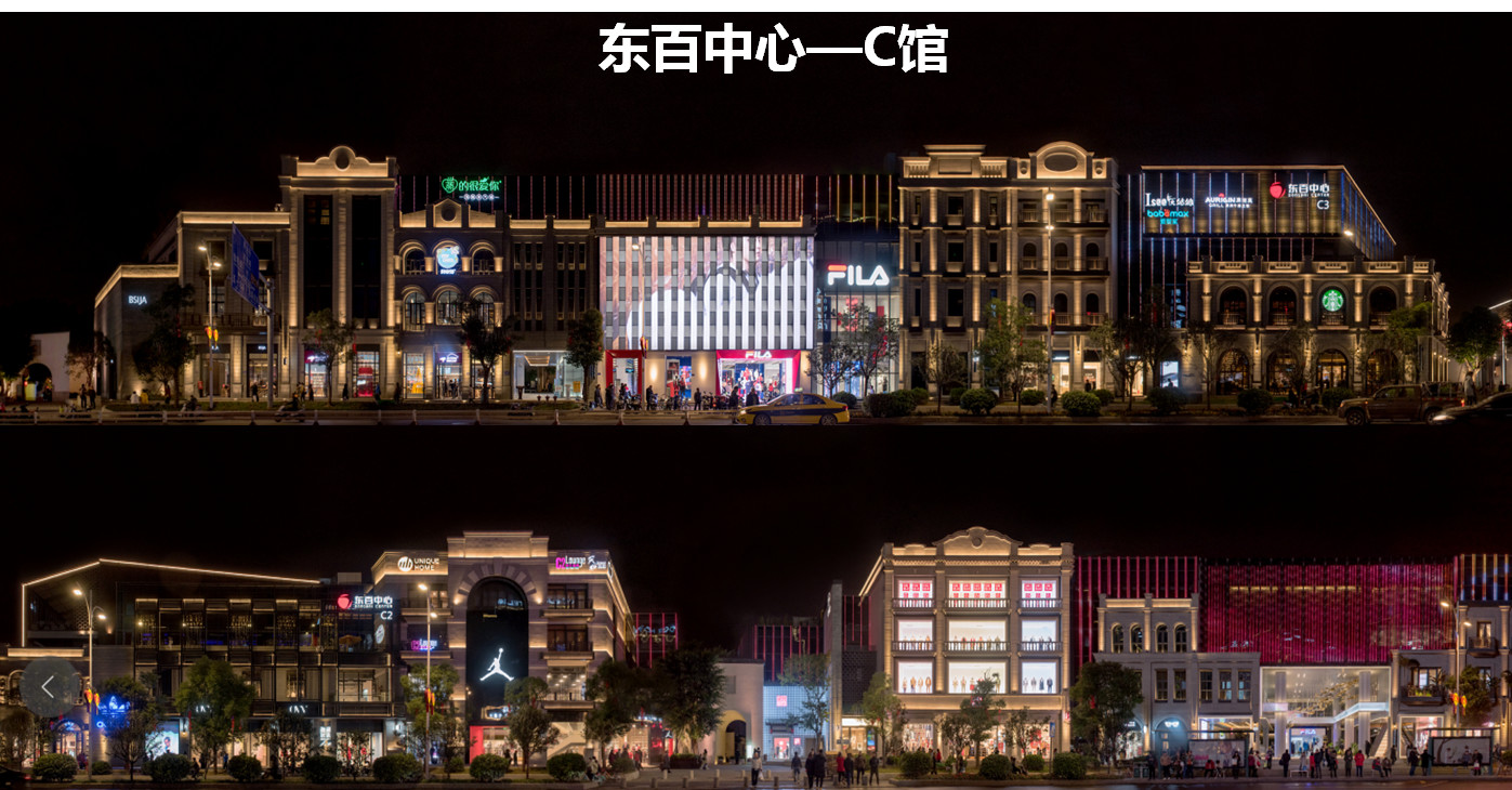 這是東百C段的夜景圖,整個C端長度700恩米,引進了福建的很多首進,引進了喬丹,引進了奈雪,引進了喜茶,也引進了京東最大的旗艦店,所以這個街區沒有深度,就是一個單面,優衣庫也是中國旗艦店,做的還是非常好的。所以C區從整個潮流組合來看,還是不錯。