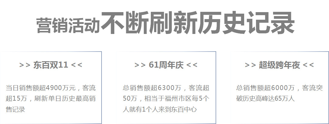 我講一個笑話,我60周年請過很多合作伙伴去,有一半全國品牌總經理甚至老板跟我講,說幸福我沒去過福州,這句話很傷害,一個做品牌老大級的人物沒去過福州,這是對我們福州商業很大的悲哀。再講一個去年跟歐萊雅集團年會上面,我跟蘭蔻的總經理坐一桌,他說幸福,我從來沒去過福建,我說我以前在銀泰的時候,他每年最起碼見過兩次溝通,來分享一些數據,所以說我們要改變我們的合作伙伴對我們整個東百商業,對于整個福建商業的認知。