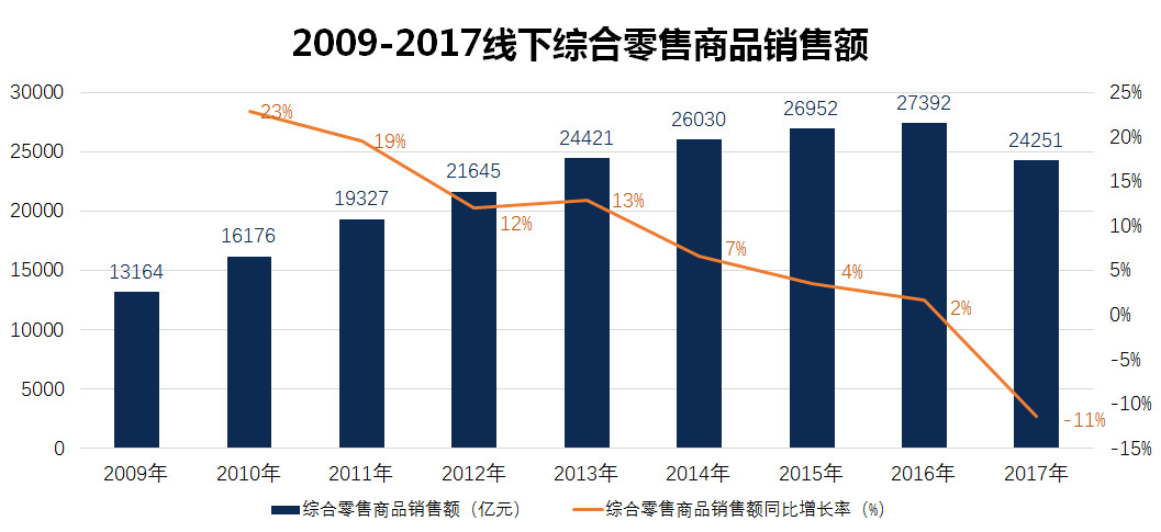 其實這三張圖里面我們可以看到,有兩個焦點,第一個線下的流量能力已經過了,其實我們線上企業的焦慮也不比傳統百貨的焦慮輕,我的前身是來自于前面分享的銀泰百貨。所以從這個來說,線上的流量多年之前也遇到非常大的瓶頸,當然線下產生百貨的焦慮以及數據的變化,這幾年的趨勢非常明顯,都是在下跌的趨勢。