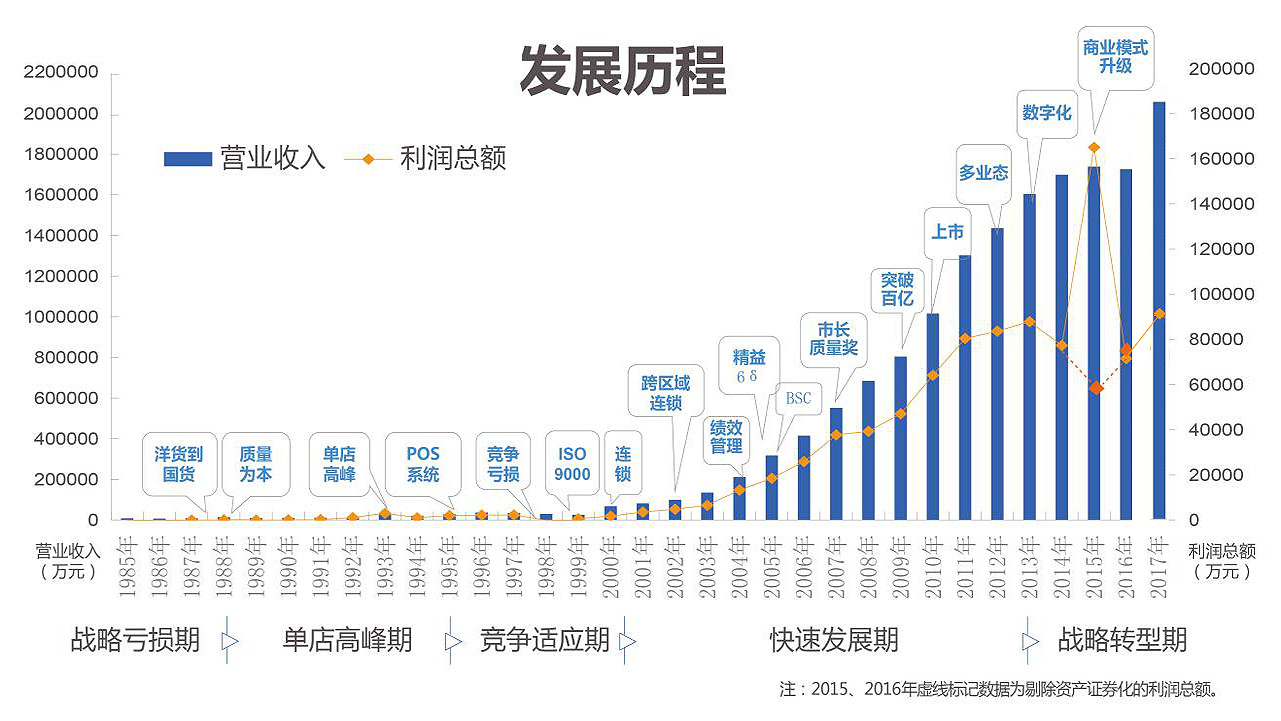 看一下整個天虹的發展歷程,也是可以看到,我們在這一輪變革轉型,其實也見證了和中國經濟的發展,也見證了中國零售業的成長和進步。天虹應該講是在卓越運營上面,我們做了很多的努力,同時也取得了非常多的成績,從單店的模式到多業態的2012年,我們天虹開始出現多業態的發展,數字化是我們2013年開始數字化的嘗試,我們也在各種論壇上對天虹的數字化進行了很多分享。在2015年,我們嘗試著商業模式的升級和轉型,因為在2015年的時候,其實電商的進入,使我們業態受到比較大的挑戰,我們同行也都知道,在這一輪一會兒重點講,在面對這樣一個挑戰過程中,天虹做了一些什么事情。
