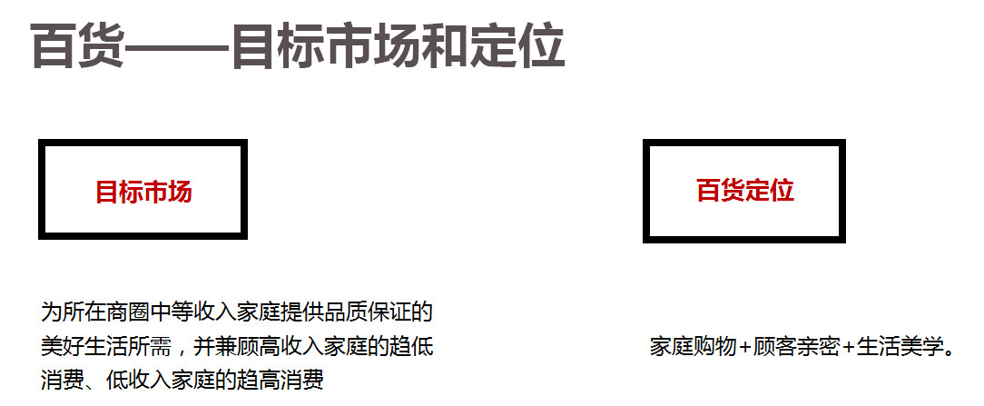 首先我們做了一個比較大的一件事情,我們整個天虹是圍繞家庭購物、顧客親密和生活美學,這是我們天虹百貨的核心定位,基于這個大的框架下的定位,我們基于不同的市場,我們針對不同的商圈、消費者,我們在深圳有30多家門店,其實我們也會發現在不同的區域市場上,顧客的消費也會有一定程度的差異性,特別是我們現在天虹也有一線城市,也有三四線城市,我們也發現不同的市場雖然叫天虹百貨,但是區域市場定位差異、消費能力、消費特征還是有很大的差異,所以我們在整個定位上,有一套比較完善的定位技術。當然剛才王總講關于大數據的一些運用,其實未來對我們天虹在定位技術上還有一個更好的啟發。