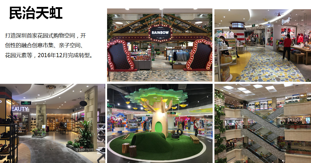 因為天虹的社區百貨非常多,我們社區百貨也遇到很大的挑戰,面積不是很大,大概兩萬到三萬方,如果沒有那么大能夠引進大面積餐飲和配套,一個物業結構不是很允許,同時經營匹配上要滿足社區生活方方面面的時候,也不允許我們做那么大面積的餐飲,基于這樣一些思考,我們就做了一個嘗試,把我們的典型的社區店打造了首家深圳花園式的購物空間,我們引進很多集市、花園因素,讓消費者在你周圍就能夠感受到放松的環境,同時做到商品的匹配和互動,我們在體驗環境空間的同時也開展了很多的親子互動和社區的互動,也收到了非常好的效果,感覺大家不是像傳統的百貨了,其實這個投入也不是很大,找到一個好的設計師很重要。并不是說我們軟裝有很大的投資,其實你的設計也很重要。