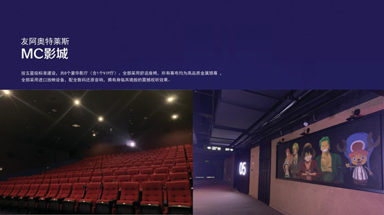 MC國際影城按五星級標準建設,共8個豪華影廳(含1個VIP廳),全3D廳,均采用世界先進的RealD 3D系統(tǒng),可同時容納近1500人。全部采用舒適座椅,高起坡大銀幕(其中兩個廳的幕布面積超100平方),所有幕布均為高品質金屬銀幕,全部采用進口放映設備,配全數(shù)碼還原音響,擁有身臨其境般的震撼視聽效果。