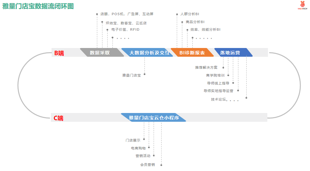 7. 雅量 DSP——雅量精準系統,集成 URM 實現進展推送,通過廣告屏互動屏,微信小程序、電子價簽等實現線上線下聯通,相互引流,精準營銷實現真正的 O2O;