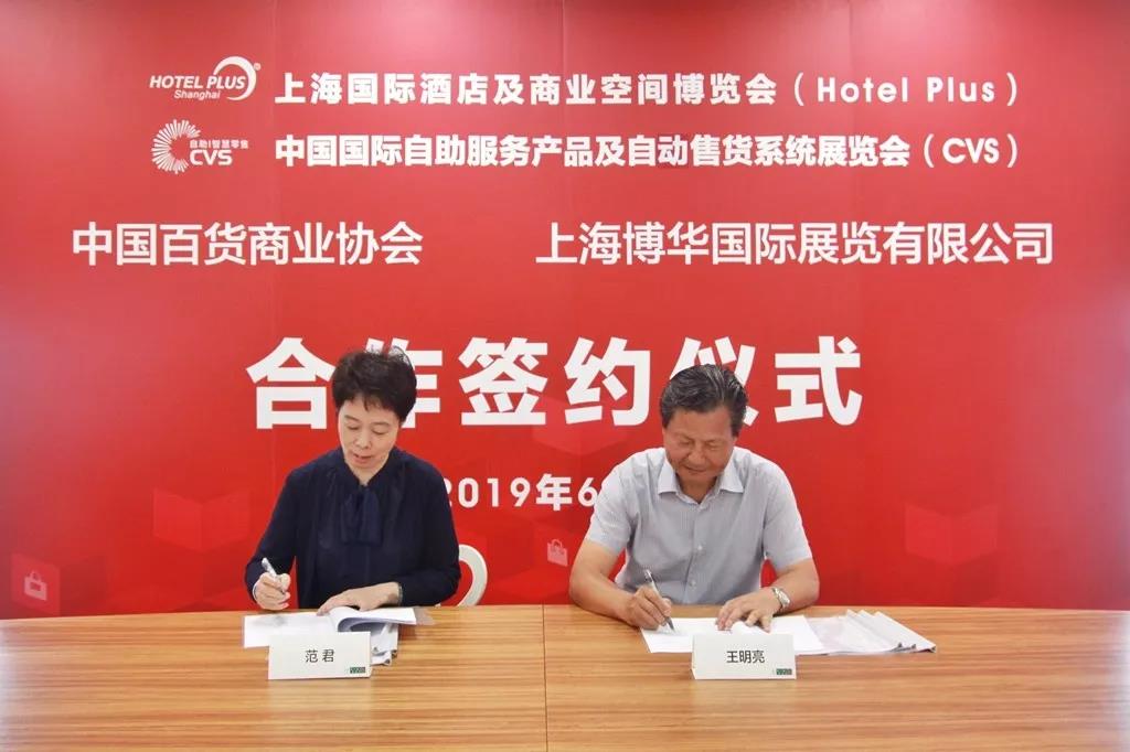 2019年6月11日,“中國百貨商業(yè)協(xié)會”與“上海博華國際展覽有限公司”簽約合作儀式在上海博華國際展覽有限公司(簡稱:上海博華)隆重舉行。此次簽約,標志著雙方建立了穩(wěn)固的戰(zhàn)略合作伙伴關系,為上海博華旗下的上海國際酒店及商業(yè)空間博覽會(Hotel Plus)及中國國際自助服務產(chǎn)品及自動售貨系統(tǒng)展覽會(CVS)的持續(xù)、健康、快速發(fā)展奠定了良好的基礎。