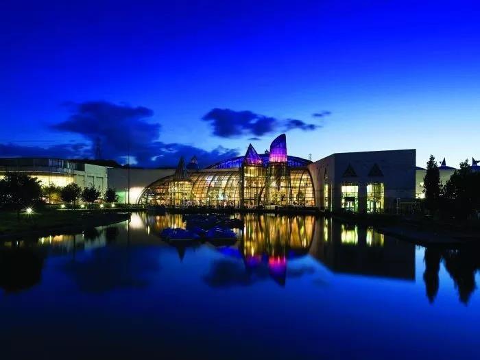 藍水購物中心位于倫敦東南部的肯特州,該項目原址是座廢棄礦場,由世界頂級、澳洲最大的購物中心開發商Lend Lease公司(歐洲分公司)操盤改造后,構成一座以“自然生態+購物+休閑”為主的購物中心,并于1993年3月16日正式開幕。其占地面積為21.45萬平方米、總建筑面積達15.57萬平米,是當時全英國最大的購物中心,同時也是歐洲最大的郊區型購物中心。