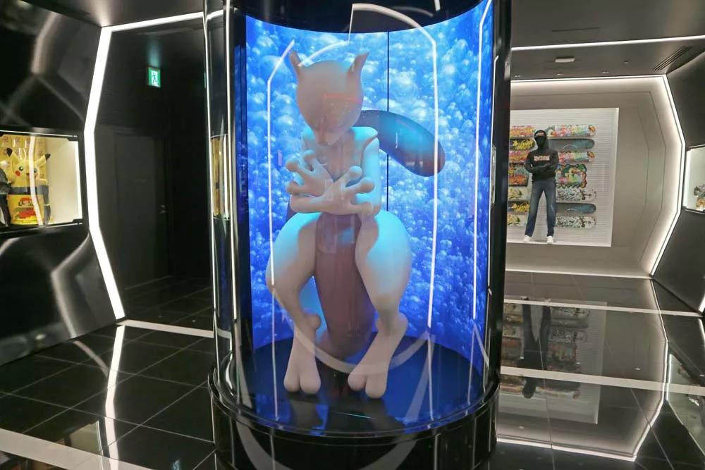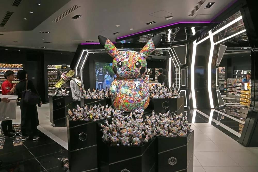 Pokémo Center寶可夢中心采用了未來風格的黑色系裝潢,集合了約5000種商品,包含與藝術家、品牌合作等澀谷店限定聯名商品,比如與任天堂的聯名限定商品、與日本街頭涂鴉畫家「Number-D」聯名推出的街頭涂鴉風皮卡丘公仔、滑板、T恤、吊飾等。