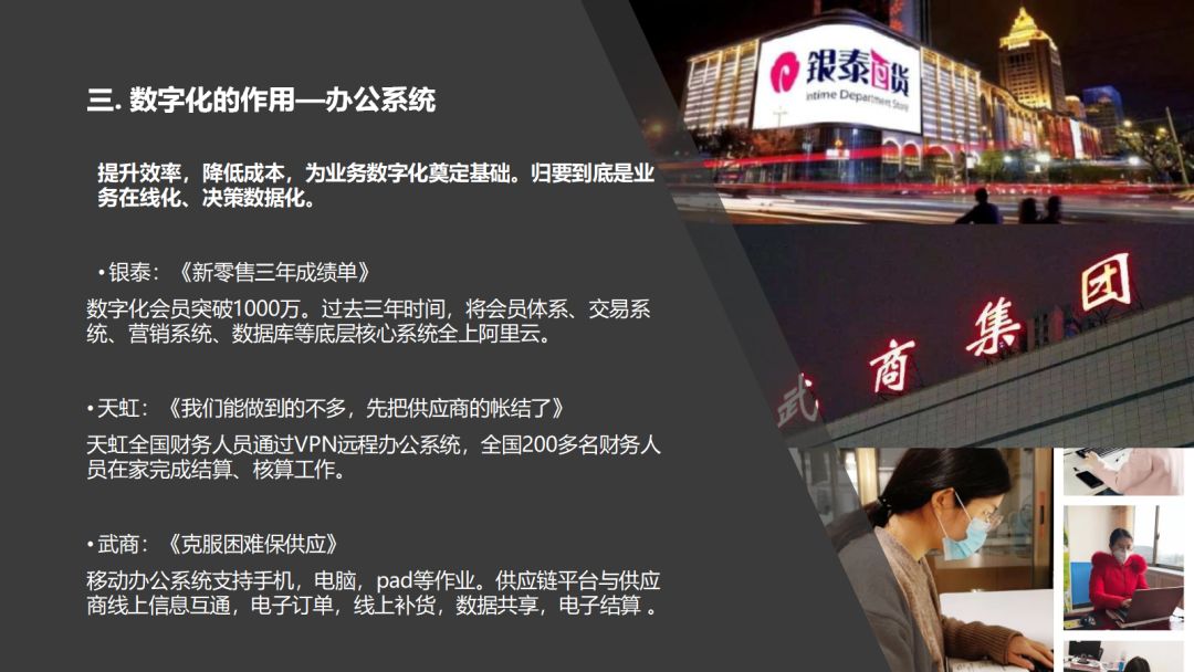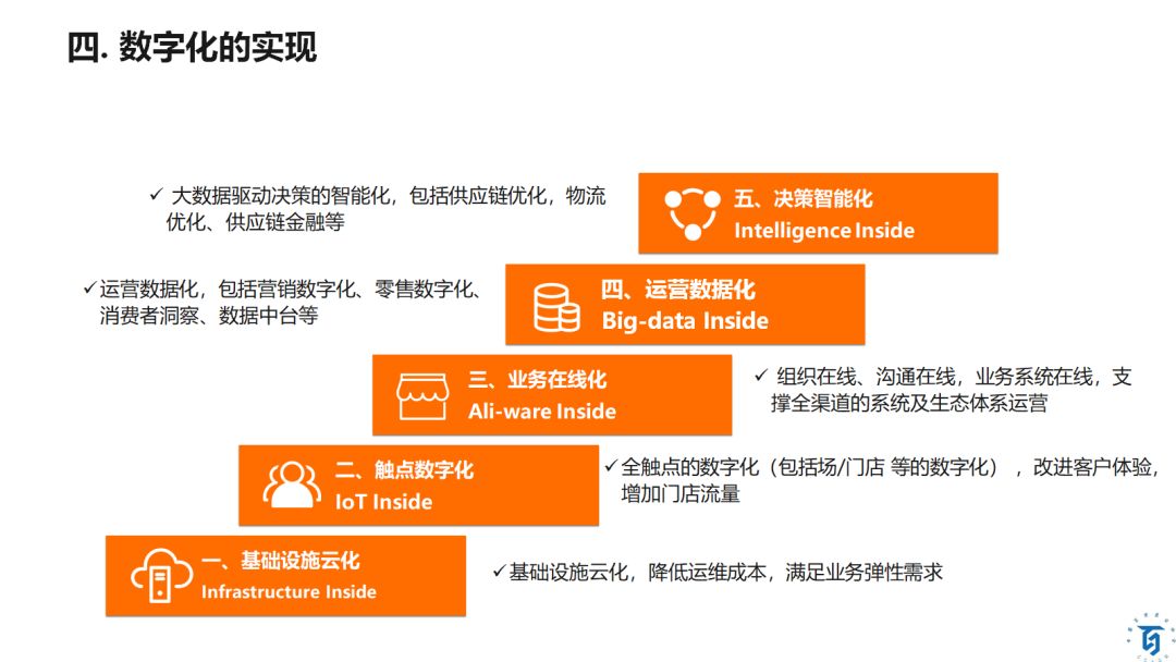 2.服務在線化:顧客在線、員工在線、商品在線、培訓在線。如“阿里云云課堂”等工具