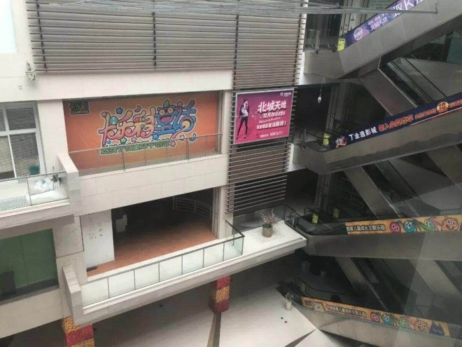 北城天地商場內部,二三樓已空置