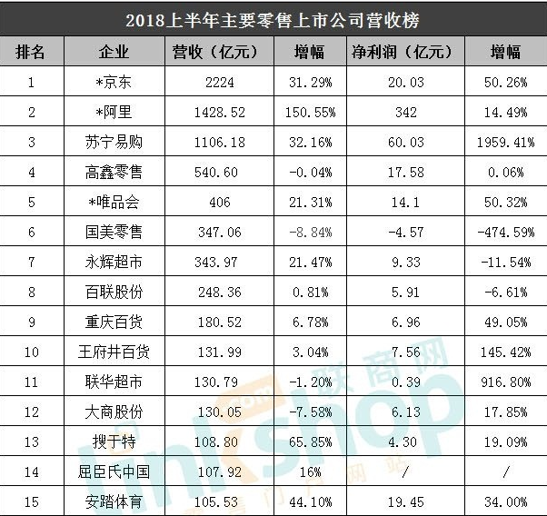 據聯商網統計數據顯示,2018年上半年,我國127家零售業上市公司共實現營收10957.54億元,凈利潤729億元。