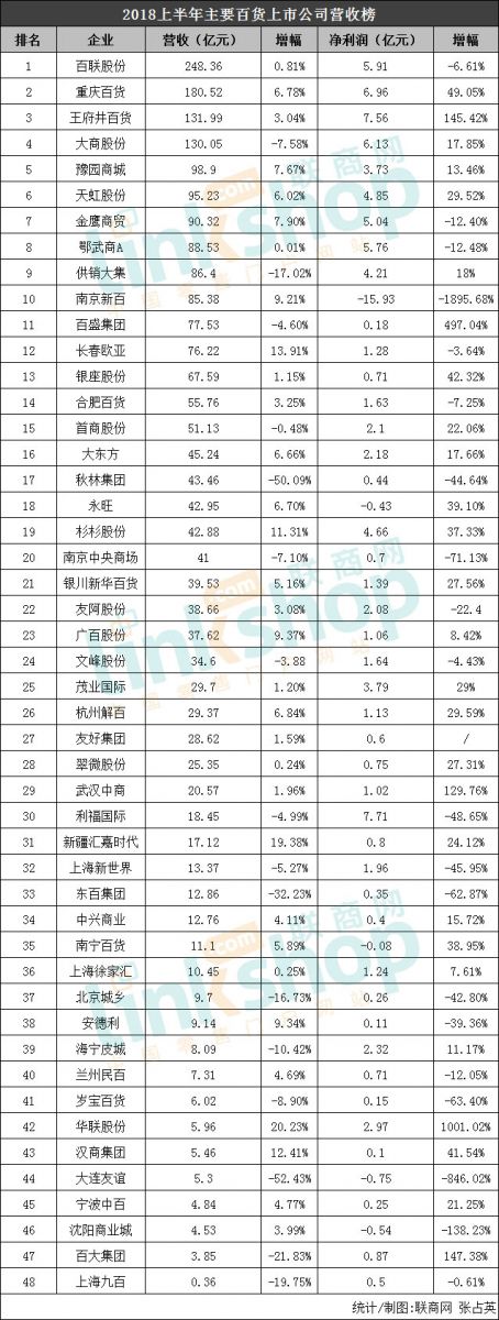 (統計/制圖:聯商網 張占英)