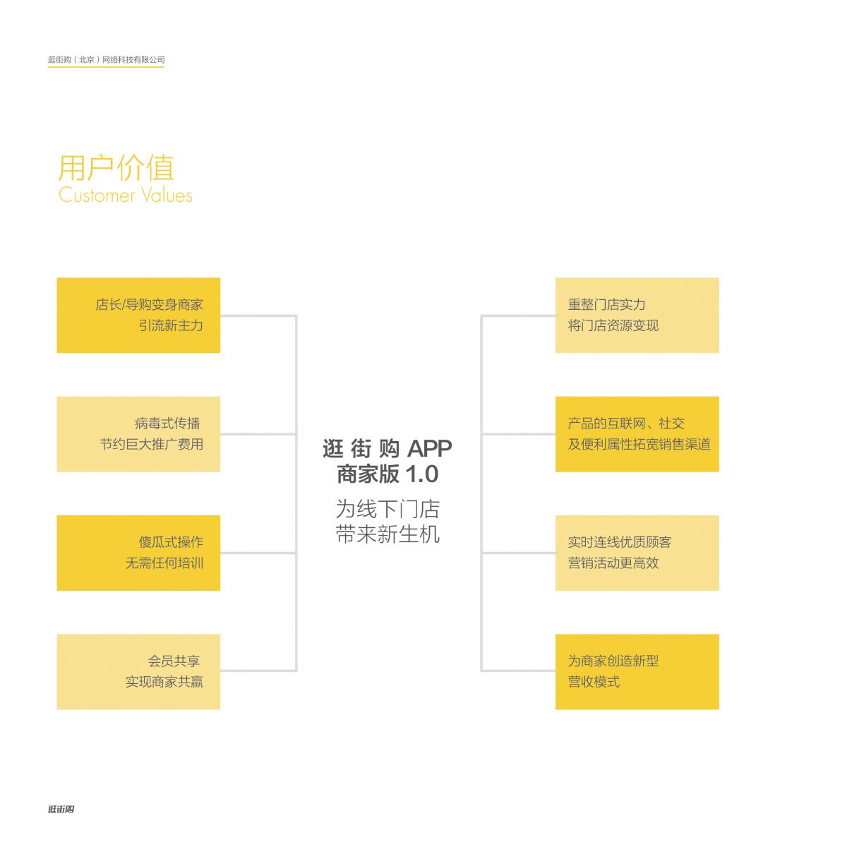 逛街購(gòu)(北京)網(wǎng)絡(luò)科技有限公司,總部位于北京。自2004年起,公司前身即致力于為中國(guó)傳統(tǒng)線下實(shí)體商家提供基于PC端的互聯(lián)網(wǎng)營(yíng)銷解決方案。在長(zhǎng)期見(jiàn)證及研究線下實(shí)體商業(yè)發(fā)展史的過(guò)程中,逛街購(gòu)發(fā)現(xiàn)無(wú)論互聯(lián)網(wǎng)及移動(dòng)科技如何發(fā)展,始終都要圍繞線下實(shí)體商家可能會(huì)面臨的客流稀缺、廣告?zhèn)鞑ヮA(yù)算及渠道緊張、傳播時(shí)效性及連貫性差以及無(wú)法有效與顧客建立直接關(guān)聯(lián)等核心問(wèn)題為其提供以先進(jìn)科技為基點(diǎn)的平臺(tái)化解決方案,而不是簡(jiǎn)單的以資本貼補(bǔ)的方式幫助線下商家短暫的拉動(dòng)消費(fèi)者的消費(fèi)熱情。歷經(jīng)十余年對(duì)線下商業(yè)用戶需求的深度解析以及對(duì)互聯(lián)網(wǎng)技術(shù)發(fā)展趨勢(shì)的準(zhǔn)確前瞻,逛街購(gòu)(北京)網(wǎng)絡(luò)科技有限公司聚焦全新的移動(dòng)端解決方案領(lǐng)域,通過(guò)開(kāi)發(fā)和運(yùn)營(yíng)移動(dòng)互聯(lián)網(wǎng)絡(luò)產(chǎn)品,以城市商圈為地標(biāo)單元,為線下實(shí)體商家打造了一款全新的端到端平臺(tái)化電子商務(wù)解決方案——逛街購(gòu)社交型傳統(tǒng)線下商業(yè)即時(shí)互聯(lián)網(wǎng)營(yíng)銷平臺(tái)。
