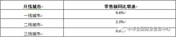 分線城市來看,一、二、三線城市零售額增速較上年同期均有回升,其中一線城市增長最快,同比增長9.6%,相比上年同期大幅回升31.9個百分點。二線城市零售額同比增長2.3%,相比上年同期回升5.1個百分點。三線城市零售額與上年持平。