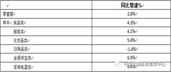 根據中華全國商業信息中心的統計,2017年春慶黃金周期間(1月27—2月2日),全國百家重點大型零售企業零售額相比上年同期增長2.8%,增速相比上年回升了9.4個百分點。在調查的100家大型零售企業中,54家企業零售額實現正增長,另外46家企業零售額為負增長。正增長的54家企業中,有11家企業零售額增速超過10%。