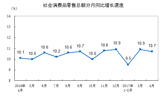 2017年4月份社會消費品零售總額增長10.7%