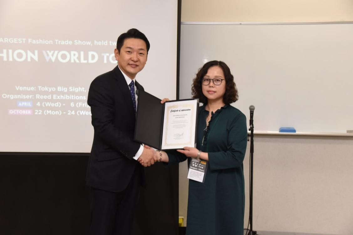 下圖為:主辦方Reed Exhibitions Japan Ltd(日本勵展)事務局長石本卓也先生給中國百貨商業協會頒發最佳組織感謝函。