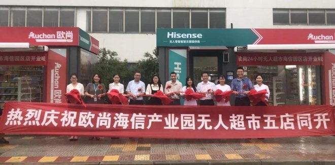 7月23日,歐尚24小時(shí)無人超市海信黃島產(chǎn)業(yè)園五店同時(shí)開業(yè),此次歐尚聯(lián)手海信,將無人超市帶入海信黃島產(chǎn)業(yè)園內(nèi),希望為更多的海信人提供智慧便捷的生活體驗(yàn),可滿足園區(qū)內(nèi)約1.5萬名員工的日常購物需求。