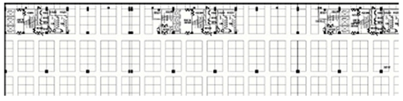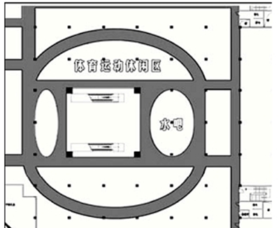 在兩條縱橫通道交叉時,如空間太大,則可考慮采用環形或敞開式,使分割與統一標準鋪位面積相差不大。
