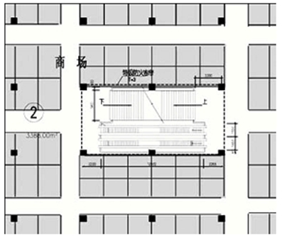 在衛生間和消防梯處,道路邊線不要有攤位,邊線應緊貼衛生間門面,如距離太長,則可考慮放置柜臺,寬度0.5米,墻面做貨架處理。