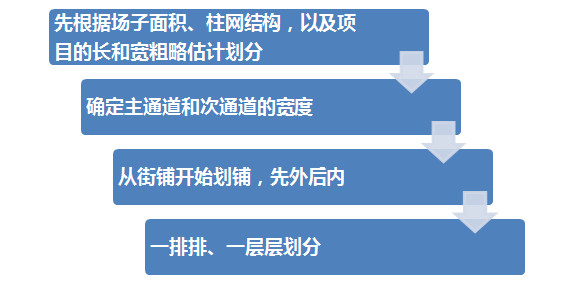 平面布局設計是確定通道形態,確定鋪位的布局和面積大小,最大限度地為每個鋪位帶來通行人流,提供更多的生意機會。
