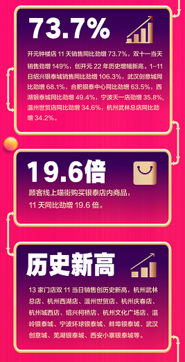 銀泰雙11戰報:全國59店銷售增長37% 13家店創新高