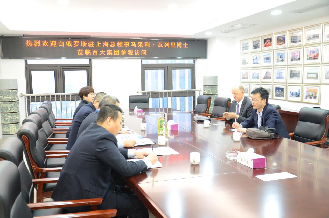 11月15日下午,白俄羅斯共和國駐上海總領事馬采利·瓦列里先生來到百大集團訪問。集團副總經理周福江率公司相關人員接待了總領事一行。