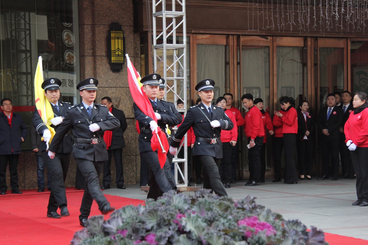 五星紅旗伴隨著雄壯的國歌聲冉冉升起,百大店旗在歡快的店歌聲中迎風飄揚。現場每一位百大人注視著國旗與店旗,內心充滿了無限的敬意、激情以及責任感、使命感。