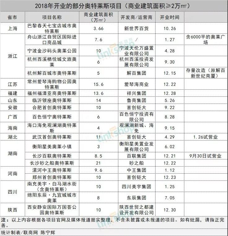 • 全國奧萊2018銷售額TOP20排行榜出爐