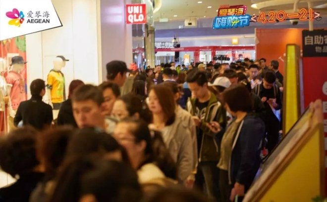 在嗨購節的48小時內,超過200萬消費者涌入全國14座愛琴海購物公園。