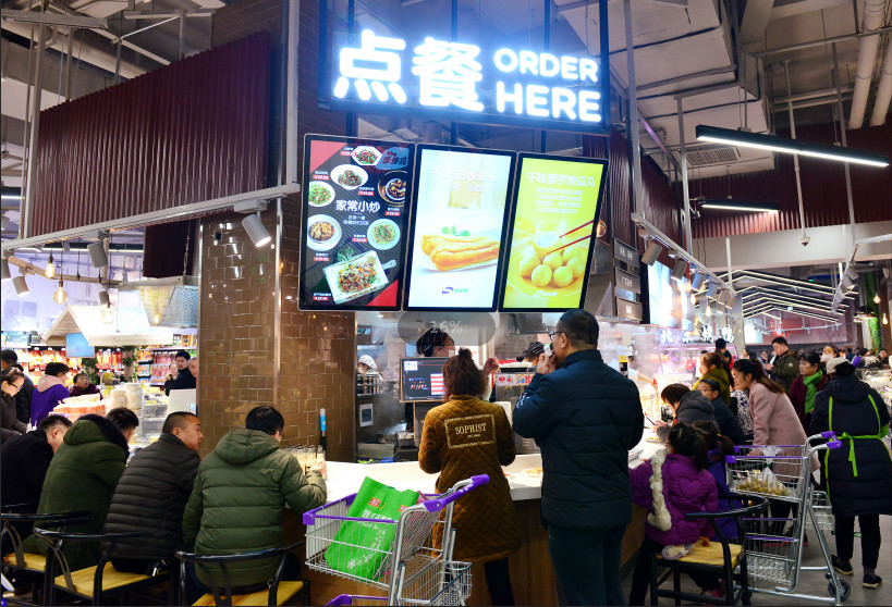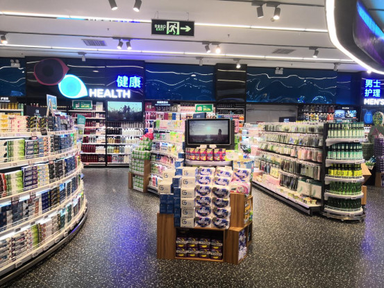 砂之船店位于湖南長沙市望城區,3598平方米的實際經營面積中陳列著近2萬支單品。出于對現代年輕人在超市消費習慣的考量,店內主要以新鮮性、高頻性的生鮮、食品為主。生鮮面積占比高達55%,日銷售額達12萬左右。