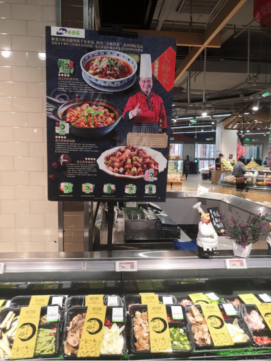 包裝配菜售賣這種形式不僅限于低脂餐,小炒快餐區亦是如此。這是步步高主推的“大師餐”系列,聘請當地有名的湘菜大師調配,并根據當地商圈消費者的口味進行改造,消費者既可在店內免費加工,也可帶走自做。值得一提的是,店內所有食材都能在“鮮食演義”區域進行加工,加工費根據消費者采購的商品進行測算。