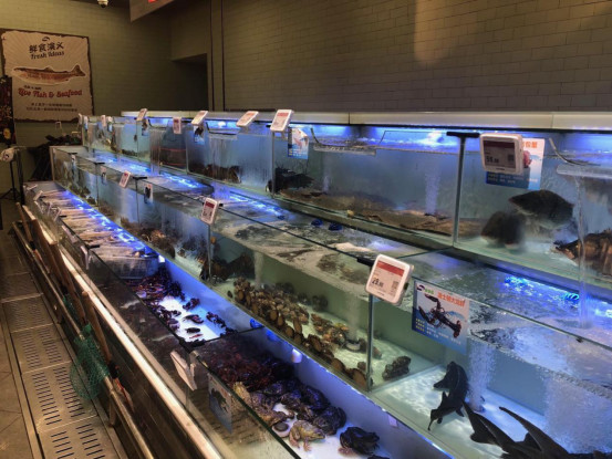 店內水產品也十分齊全,據王閃介紹,本店內海產品單品數大約在200支左右,市場上常見的海鮮種類基本被囊括其中。