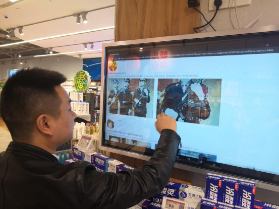 砂之船店內有40多塊顯示屏,全程展示商品的原產地、質量、促銷信息等;此外,店內還有3塊面積較大的互動屏,功能類似于平板電腦,消費者可以在上面瀏覽信息、玩游戲等。