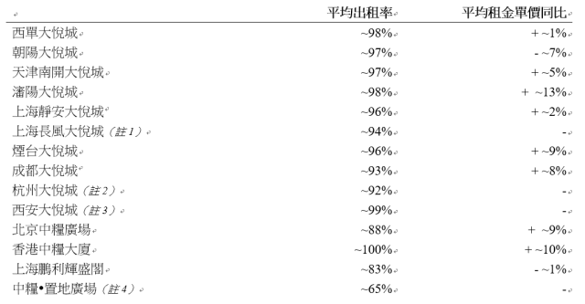 4月24日,大悅城地產發布了其2019年首季營運數據。公告顯示,在2019年1-3月報告期內,大悅城地產投資物業運營維持高水平,已開業的大悅城出租率持續高位運營,其中西安大悅城達到99%,沈陽大悅城平均出租單價同比實現雙位數增長;物業開發方面,公司合同銷售總面積約為48,765平方米,合同銷售總金額約人民幣9.01億元。.