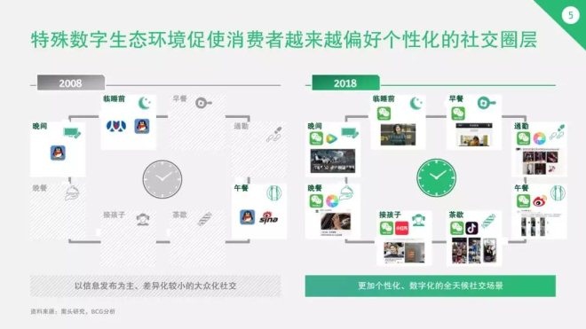 傳統的社交渠道主要以信息發布為主,消費者社交圈層差異化較小。而今天的消費者社交圈層出現多樣化的趨勢,社交場景越來越碎片化和個性化。