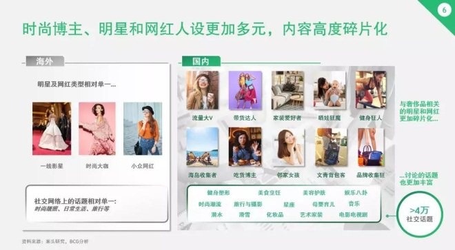 國外市場中明星和網紅的社交話題相對單一,不外乎時尚、日常生活和旅行等。而中國市場中,KOL們的話題品類則高度碎片化,健身、美食、娛樂八卦、星座、母嬰都可以成為營銷內容的載體。