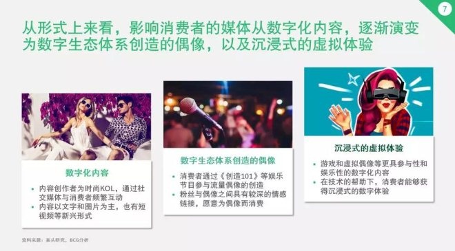 從形式上看,數字生態體系創造偶像和沉浸式的虛擬體驗正在逐漸崛起。前者讓消費者直接參與到《創造101》等節目和流量偶像的打造中,粉絲與偶像有較深的情感鏈接,更愿意為偶像而消費。