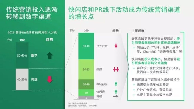 另一方面,傳統渠道的影響投入持續轉移,快閃店和PR線下活動成為不多的增長點。過去一年,奢侈品牌更樂于投資大型活動,吸引消費者眼球的同時宣傳品牌精神。