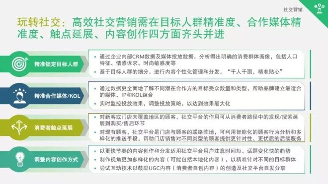 玩轉社交:要實現高效社交影響,品牌需在目標人群精準度、合作媒體精準度、觸點延展、內容創作四方面齊頭并進。