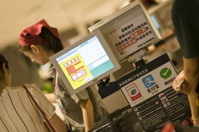 廣州某商場收銀臺,支持多種支付方式,如微信、支付寶、銀聯云閃付