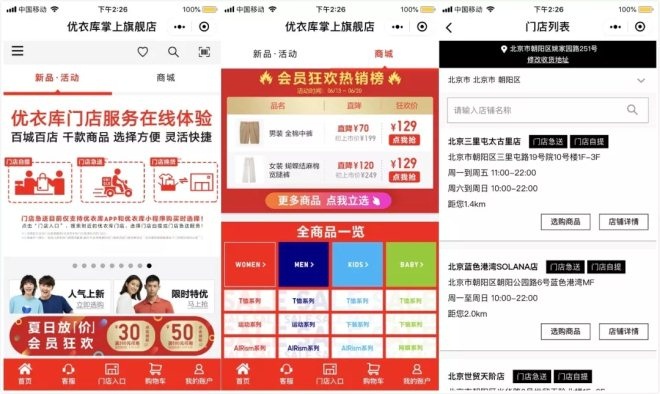服裝零售品牌優衣庫的做法是,探索社交觸點的全渠道網絡。2018年雙十一期間,優衣庫在原有“線下門店+天貓旗艦店”經營策略基礎上,推出基于微信社交生態的“掌上旗艦店”,搭建出“線上電商+線上掌上旗艦店+線下門店+線上導購”的立體節點。
