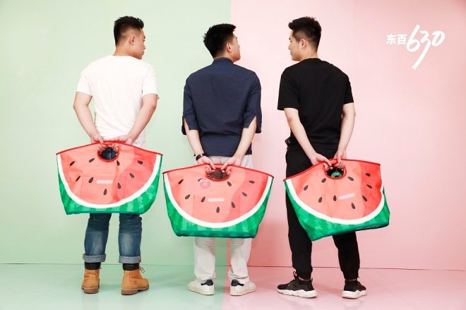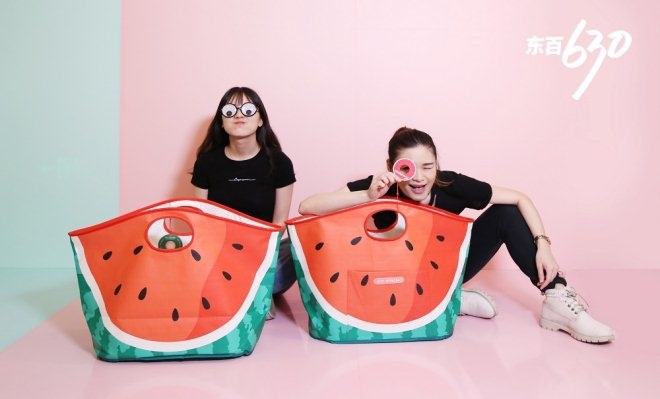 本次東百630年中慶的另一大亮點,是配合活動推出的超大西瓜手袋。活動期間,共有一萬個訂制西瓜手袋從東百各門店被顧客帶回家。在東百旗下各商場內外,隨處可見顧客拎著西瓜手袋購物,成為一大流動的宣傳亮點。