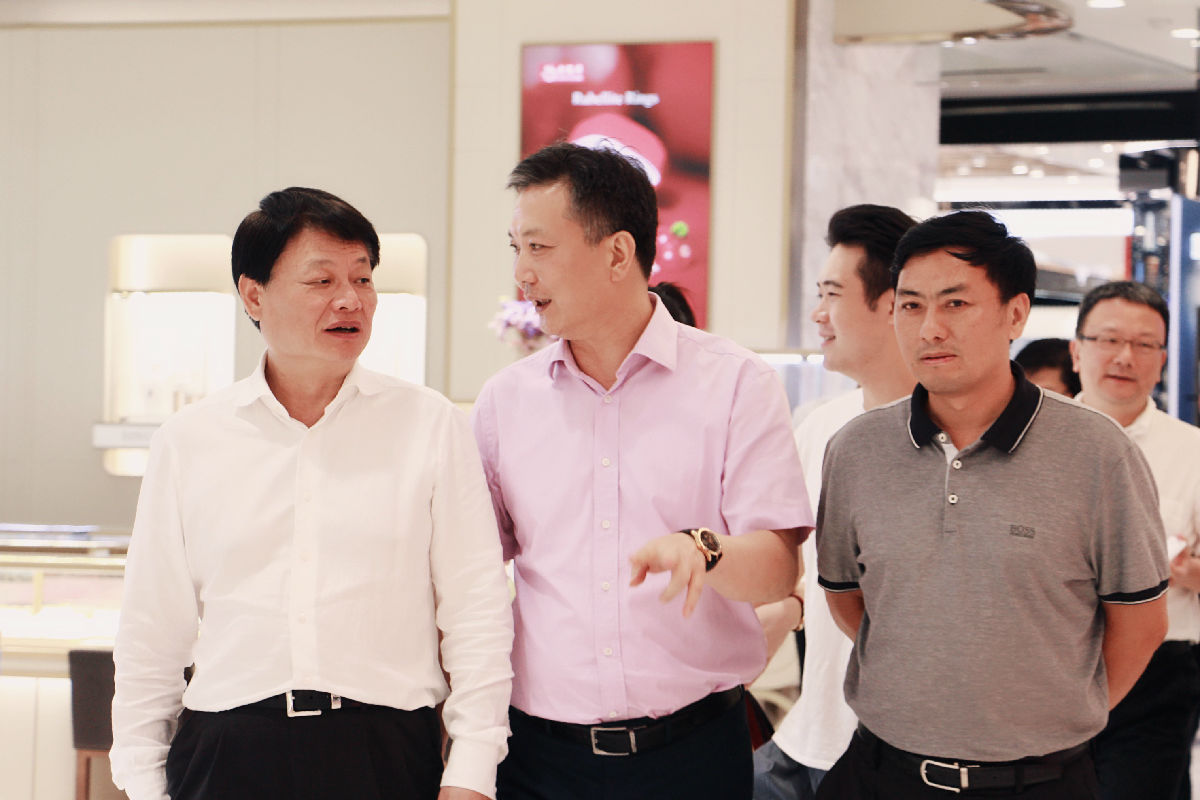 洪崎董事長一行來訪第一站,走進(jìn)東百中心A館,親身感受東百商業(yè)的底蘊(yùn)和氛圍,以及其對“精心服務(wù)每一位消費(fèi)者品質(zhì)生活”使命的有力踐行。爾后,來訪團(tuán)前往東百集團(tuán)品牌展廳,在講解員的介紹下,進(jìn)一步了解東百。期間,就東百的業(yè)務(wù)構(gòu)成、戰(zhàn)略版圖等關(guān)注點(diǎn),與施文義董事長互動(dòng)交流。